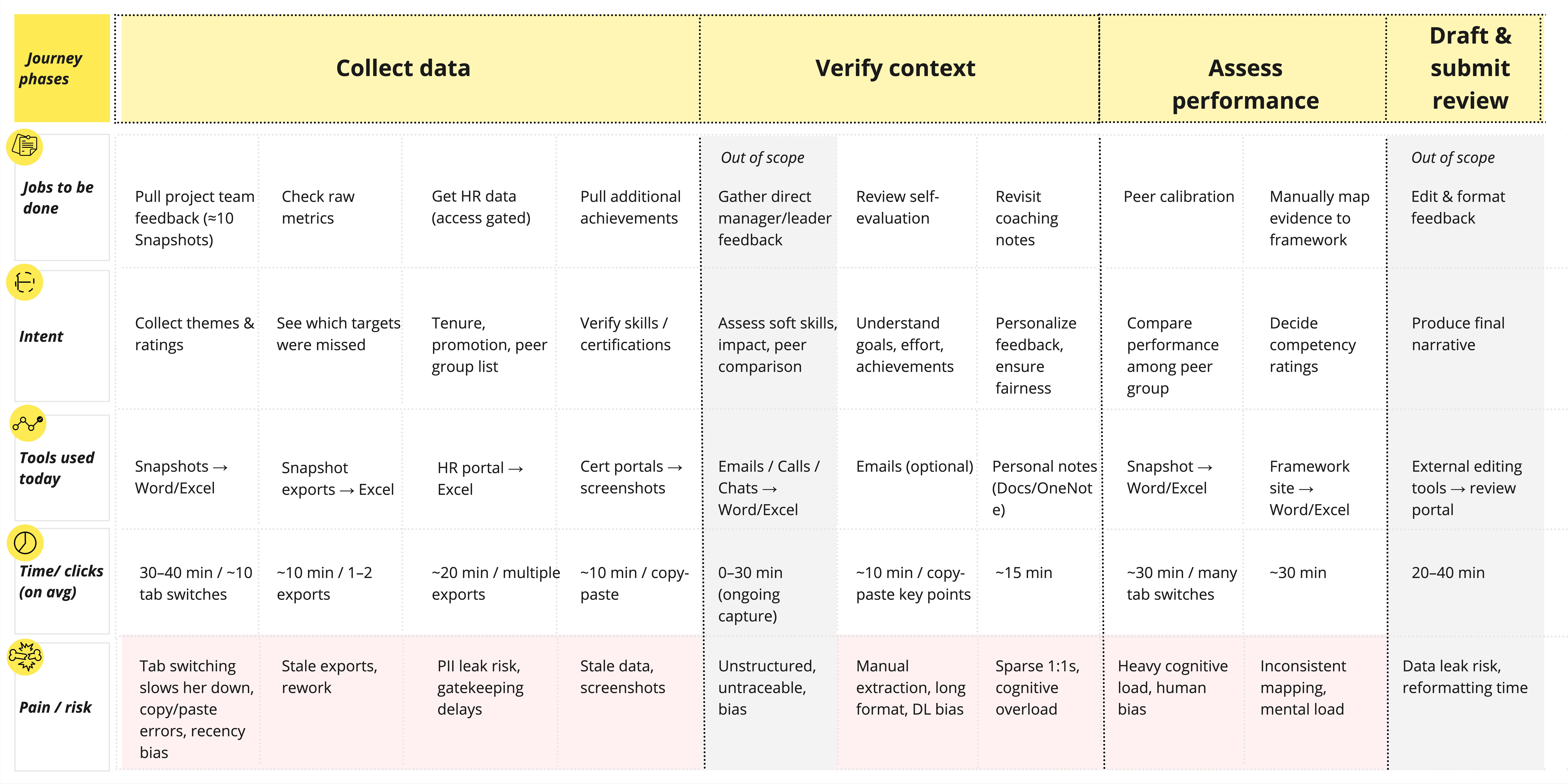 We began by mapping the 'Annual review ecosystem' to uncover where Kelly was losing the most time. Three patterns emerged: